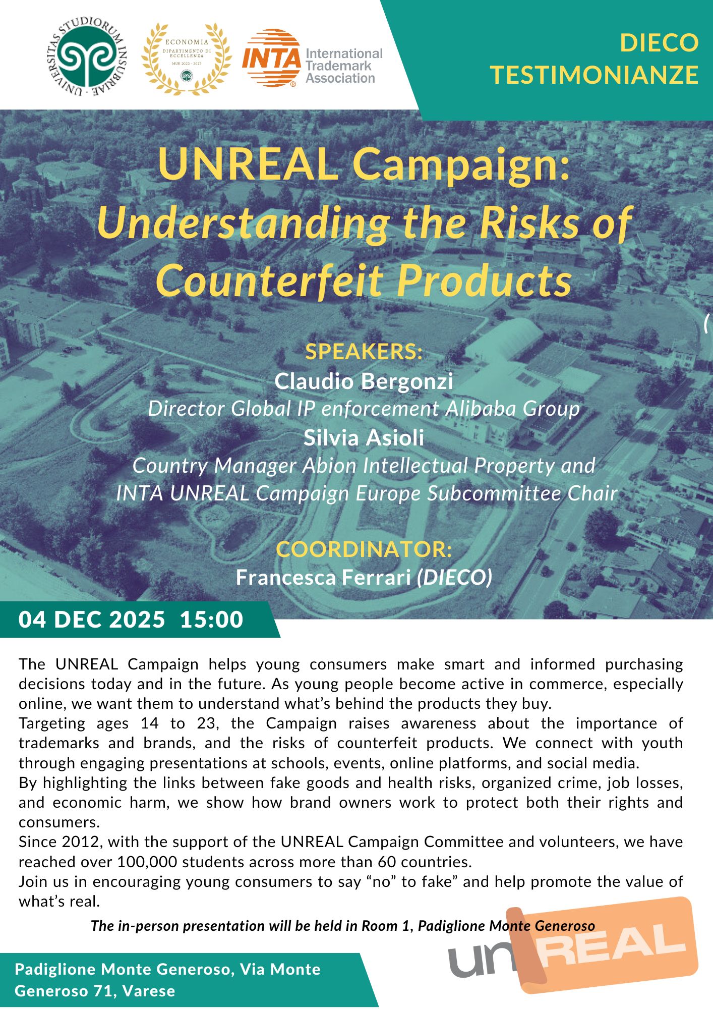 - Luogo: Aula 1, Padiglione Monte Generoso